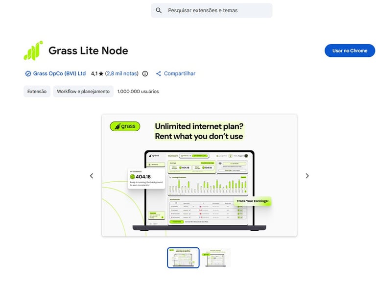 Disponível para navegadores como Google Chrome e Brave, a extensão funciona em segundo plano e é responsável por compartilhar automaticamente sua internet ociosa, sem interferir no uso diário.