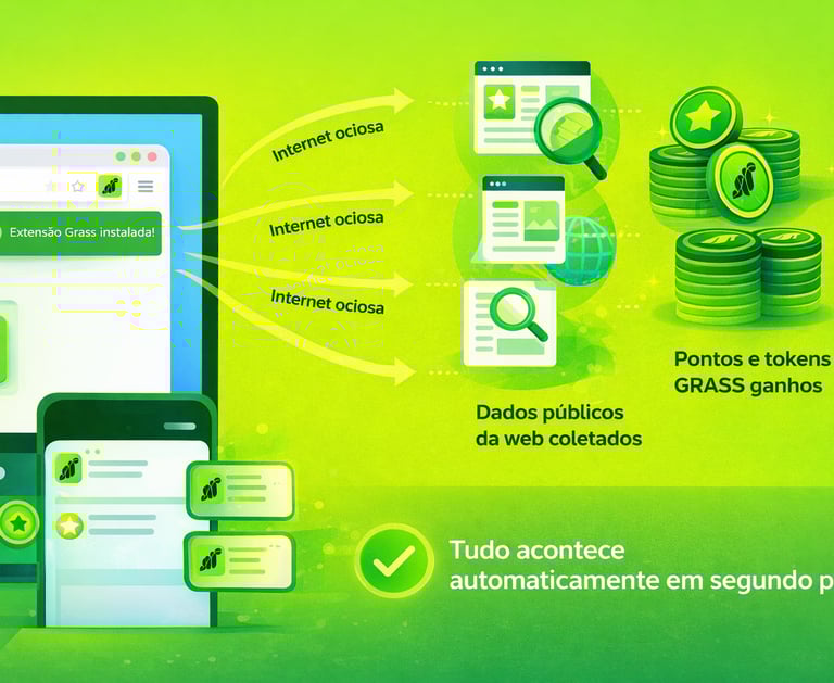 O Grass é uma rede descentralizada que usa a conexão de internet dos usuários para coletar dados públicos (sem acessar informações pessoais). Esses dados são organizados e usados por empresas e projetos de IA.