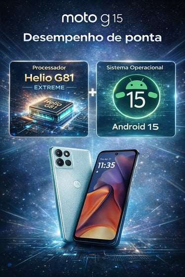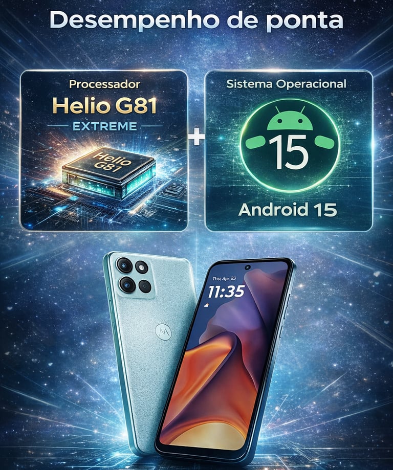 O processador Helio G81 Extreme, aliado ao Android 15 otimizado, oferece uma experiência fluida para: