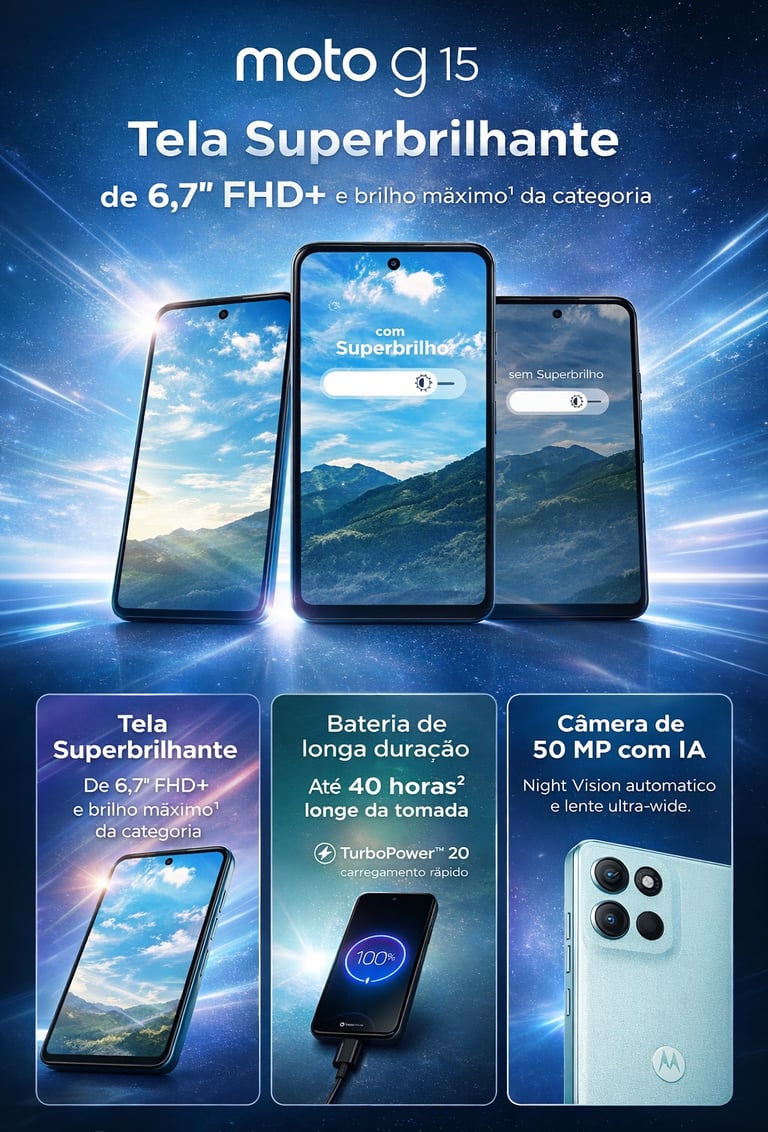 O Motorola Moto G15 vale muito a pena para quem busca um smartphone confiável para o dia a dia, com boa tela, bateria duradoura e sistema atualizado, sem gastar muito. É uma ótima escolha para estudantes, usuários comuns e quem prioriza autonomia e estabilidade.