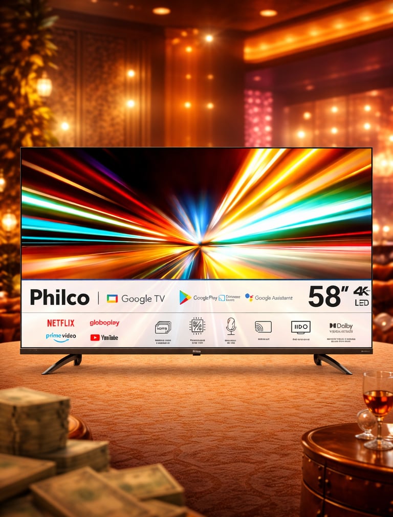 A Smart TV Philco 58” P58KGA é uma excelente opção para quem busca tela grande, resolução 4K e sistema Google TV por um preço competitivo. Ideal para filmes, séries, esportes e até games casuais, esse modelo entrega um ótimo custo-benefício no segmento intermediário.